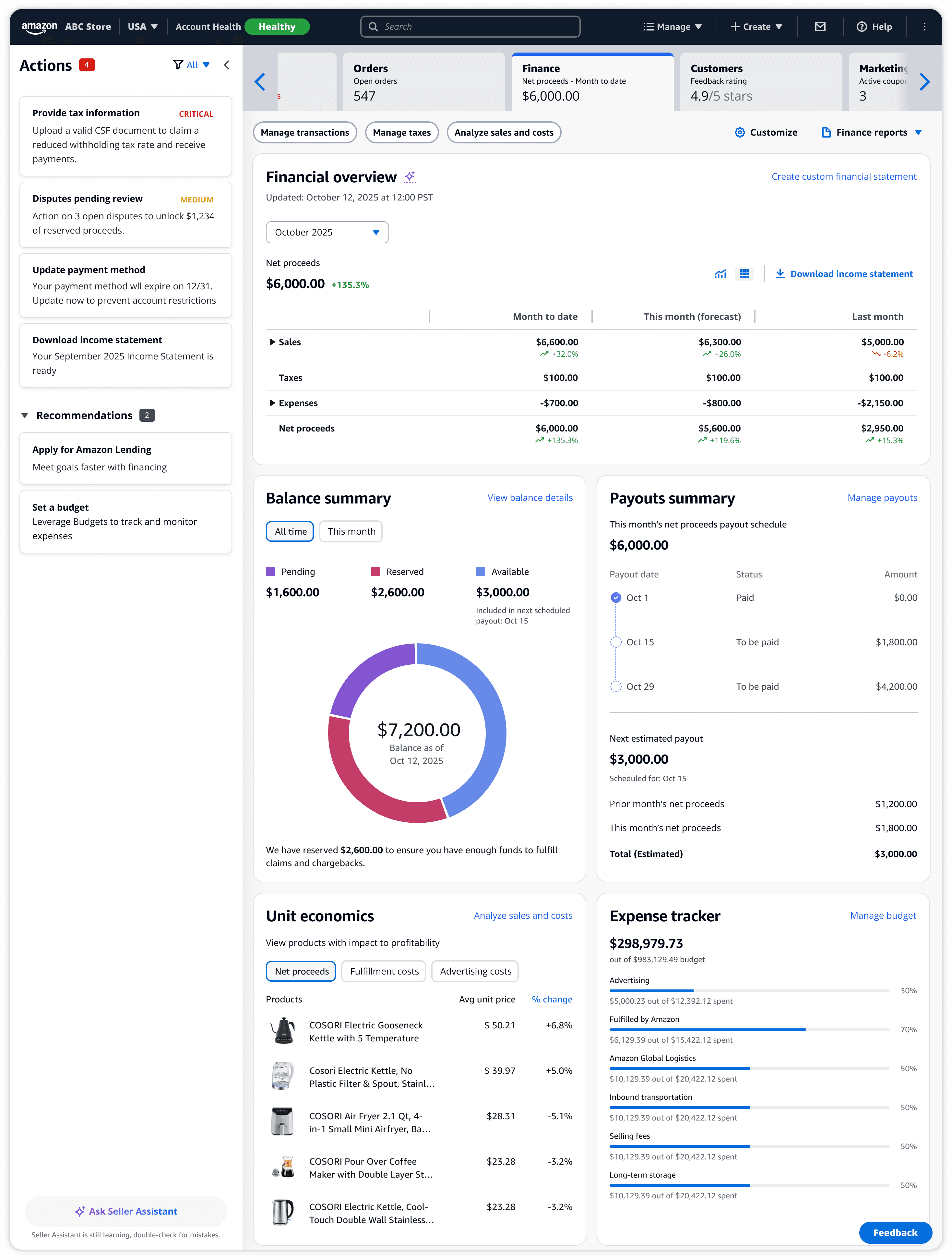 Financial reporting and compliance: Sellers currently spend several hours weekly pulling reports for reconciliation, often needing to stitch various sources to get a clear picture.